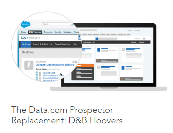 If you would like to continue to use the D&B data included in Data.com Prospector, you can migrate to the D&B Hoovers app on the AppExchange. Alternatively, explore other AppExchange solutions for prospecting.